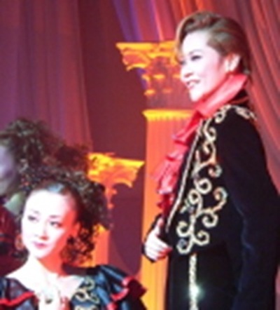 〜〜〜〜〜〜〜〜〜〜 オープニングは 洋さんの歌う ♪ザッツエンターティメント♪。 ワクワクする音楽に、観客の 気持をグッと盛り上げ 洋さんの明るさと、 メンバーのスマイルが、 一気にレビューの世界に 気持を運んでくれました。 レビューと言えばやはり “パリ!” とMCに続いて、全員による パリメドレー。 洋さんは ♪パリ野郎♪ ♪愛の旅立ち♪ を聞かせてくれました。 ![]() 続いてのMCは洋さんと 奈ツ城さん、友麻さんの “男役とは?” 興味津々 のテーマを歌の 流れのまま、テンポ の良く、面白く ♪アイガットリズム♪ にいつの間 にか入っていきました。 沙月さんのソロで ♪命のなまえ♪ ![]() そして、 がらりと舞台の照明が変わり、 ブラックスーツに真っ赤な フリルのシャツも鮮やかに ♪グラナダ♪ が ドラマティックに歌われ ました。 洋さんの会場に響く はりのある声は心地よく、 醸し出す雰囲気は レビューの醍醐味そのままに、 ゾクゾクさせ、鳥肌が立ち ました。 序章からメロディアスな部分 へは黒と赤のフラメンコ衣装 のメンバーによりダンスが 華やかに踊られます。 友麻さんのソロで ♪The Lady is a Tramp♪ の後、洋さんは、1週間前の抜き 襟にアップの姿から、大変身の 粋な着流しで、民謡メドレー。 北から南へと次々に歌い繋いで いきますが、民謡を歌う洋さんを 初めて拝見しました。 最南端、沖縄の民謡では美森さんと 哀しいストーリーを感じさせる踊りを 見せてくれました。 ![]() ![]() 音量がアップして テンポの良いロック。 男役だけのダンス、 娘役だけで金色の 深いスリットドレス でセクシーなダンス。 そして圧巻は緊張感 に満ちたタンゴ。 ドラマティックな 音楽に、沙月さん との切れのある振り と、暗い目の色 に物語を感じさせます。 ほの暗い明かりの元で 踊る二人にどんな出会い と別れが、そして再会 があったのかと・・・ 洋さんは会場を巡っ て、しっとりと ♪ラヴ・マジック♪ を聞かせます。