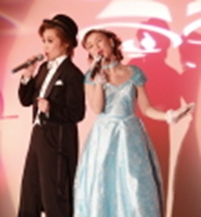クリスマスムード最高潮の24日 “藤田男爵”で有名な太閤園別館 ガーデンホールで「Dreamin ‘Xmas★2007」 ディナーショーがありました。 洋あおいさん、元OSK娘役の 大咲せり花さん、そして ピアニスト佐野多由子さんの 初トリオ、リクエスト曲で綴る ステージという新しい試みに、 洋さんの新たな魅力に 期待が高まったステージでした。 ![]() 〜〜〜〜〜〜〜〜〜〜 OPENING 真っ赤なドレスの大咲さんと ワインレッドの衣装の洋さん が後扉から登場 ♪サンタが街にやってくる♪ ♪きよしこの夜♪ ♪ホワイトクリスマス♪ ♪ジングル・ベル♪ とおなじみのクリスマスソング。 ホールは一瞬のうちに華やかな クリスマスパーティーに。 Christmas Songs 〔Made IN JAPAN〕 ウェルカムトークに続いて 日本のクリスマスソングが 歌われました。 洋さんの ♪君と僕のホワイトクリスマス♪ 大咲さんの ♪サイレント・イブ♪ 三人のハーモニーだけで聞かす ♪クリスマス・イブ♪ ピアノソロで ♪戦場のメリークリスマス♪ と 聖夜にふさわしく、じっくり 聞かせてくれました。 ![]() Medley of “MUSICAL” 〔West End Shows〕 会場の雰囲気が変わり舞台奥 からファントムの歌声が・・・ 黒燕尾にマントの洋さん。 後扉から クリスティーヌの大咲さん。 “オペラ座の怪人”から ♪The PHATOM of OPERA♪ ♪Think of Me♪ リクエストも多かったのでは と思わせる、とても魅力的な 場面でした。 低くドラマティックな声で ファントムを、又甘くソフトな 声で恋人ラウルを歌い分ける 洋さん。 淡いブルーのドレスに同色の チョーカーの大咲さんは美しく 清楚でそれに澄んだ声は クリスティーヌにぴったりでした。 ![]() ![]() 続いてグリザベラのように 羽のストールを肩に “Cats”から ♪メモリー♪ “ME AND MY GIRL”は ♪街灯に寄りかかって♪ ♪ミー・アンド・マイ・ガール♪ をミュージカルの場面のように、 可愛らしく“ビルとサリー”を 演じてくれました。 ![]() love Letters −SERIKA Osaki− 大咲さんのコーナーは、四拍子 から三拍子にリズムを変えて ♪ラヴィン・ユー♪ 。 高低差のある音を軽快に歌い こなされてさすが“歌姫”です。 そして舞台から客席に降りて カンツォーネを2曲 ♪コメ・プリマ〜ヴォラーレ♪ は地中海を思わせる明るさでした。 又しっとりと ♪ひだまり♪ を披露してくれました。 On My Mind −AOI Hiro 真っ白な衣装で登場の洋さん、 昨秋の汀さんとのジョイント公演 「時空」から ♪時空を超えて♪ そして東京、大阪での初リサイタル 「ダイアリー」からテーマ曲 ♪未来へ♪ この間プログラムにない2曲の サプライズプレゼントがありました。 昨年11月の汀さんのディナーショー に行かれた時、汀さんから「時空の時、 私の歌、歌ってくれてやろ、 あれ歌ってよー」とリクエストが あり、 ♪星が近くに見える♪ を歌ってくれました。 公演時のお話と汀さんの“物まね” 付きでした。 かなりよく似ていて、「時空」 公演を思い出します。