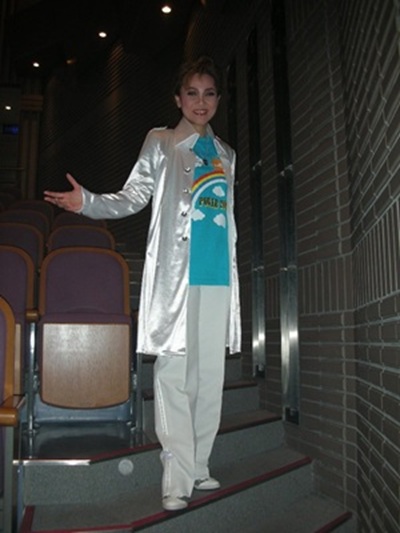 残暑厳しい夏休みも終わりに近い頃 洋さんは J&A DANCE STUDIO公演に 2002年夏以来2度目の SPECIAL GUEST として出演されました。 〜〜〜〜〜〜〜〜〜〜 リズム感の良い子供達に感心しました! トレンドの音楽に乗って舞台や客席の 通路でも元気いっぱい一人一人が主役 でした。 音楽で舞台を創っていく様子に、 企画・構成・演出の愛元麻樹さんの プログラムのご挨拶の言葉 「先輩達が励まし支え、互いに信頼と 友情の絆を深めながら今日のこの日を 目指し・・・・」が実現されました。 スタジオ全体の明るさ、兄弟姉妹の ような縦の絆が感じられ楽しい公演 でした。 洋さんはプログラムの中ほどの ゲストコーナーで登場でした。 ♪あこがれ を歌うLOVEちゃんの後方に “憧れのスター洋さん”がスポット に浮かぶ、 「時空」公演を思わせる場面」から ショートストーリーが始まりました。 「洋さんと共演する人」の オーディションに集まった LOVEちゃんと4人の少女 たちに演出家の声(洋さん)が 自己紹介を要求。 そこに登場したアシスタントの スマイリーオハラ庄助さん(洋さん) は業界人風?? 駄洒落と強烈な濃いキャラでその 場をとりしきり、笑いを誘います。 洋さんと共演するには “とっさの判断、つまりアドリブ力” が必要と応募者のアドリブ力を チェックするため?と会場を まきこんで借り物競争に挑戦。 おかしなオーディションに会場は 盛り上がりました。 コーラスラインのパロディなの ですが、 J&A メンバーの喜劇挑戦でした。 EXILE の ♪道 は LOVEちゃんのリクエスト。 洋さんは歌と HIPHOP のステップをメンバー達と カッコよく決めてくれました。 LOVEちゃんと洋さんの トークから ♪You are the top の歌に「洋さんは憧れの人」 「LOVEちゃんこそ沢山の公演 ナンバーを振り付けする凄い 才能」 とお互いに褒めあう軽快な ナンバー。 お二人の息がピッタリでとても 愉快な場面でした。 洋さんのダンスの凄いところは 一瞬で観客をその世界に誘うこと。 スポットライトに浮かぶ黒燕尾の 洋さん、ピアソラの響きに、 直前の和やかな雰囲気から 一転して緊張感に満ちた ♪タンゴ 歌はオリジナルの2曲 ♪時空を超えて 1昨年の「時空」公演の舞台を 思い出します。 ♪未来へ は会場に一人一人 に思いを届けるかのように、 凄い迫力で隅々まで響いて いました。 ![]() そしてフィナーレでは、 LOVEちゃんはじめ生徒さん 全員に迎えられ、上下白の爽や かなスーツで嵐の ♪感激カンゲキ雨嵐 を歌われ、続いて EXILE の ♪Someday を歌われ、 大盛況の中、幕はおりました。 演出・振り付けも担当している LOVEちゃんは 03年12月東京プディストホール、 05年1月大阪テイジンホールの 「ダイアリー」公演で共演した Boyzのメンバーの一人。 憧れの洋さん(それは叔父?叔母?) のダンス、歌の再びの共演は 微笑ましくも、楽しい舞台でした。 |