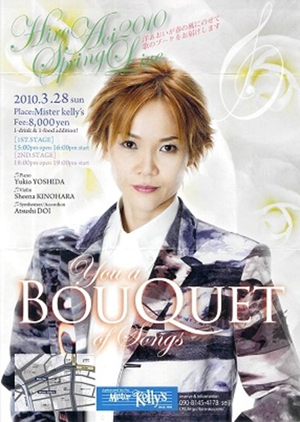 2010年3月28日(日) 16:00〜 19:00〜 ミスターケリーズ Hiro Aoi 2010 Spring Live You a BOUQUET of Songs |