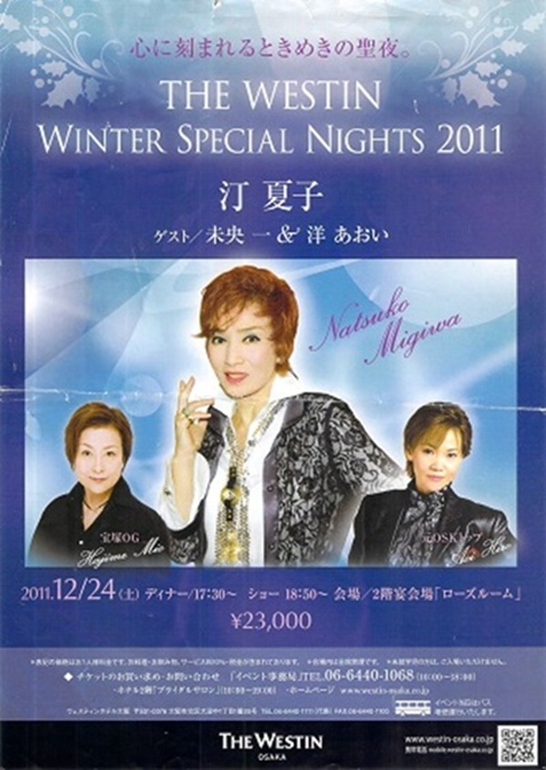2011年12月24日(土) 17:30〜 ローズルーム THE WESTIN W INTER S PECIAL N IGHTS 2011 汀 夏子 ゲスト/未央 一 & 洋 あおい |