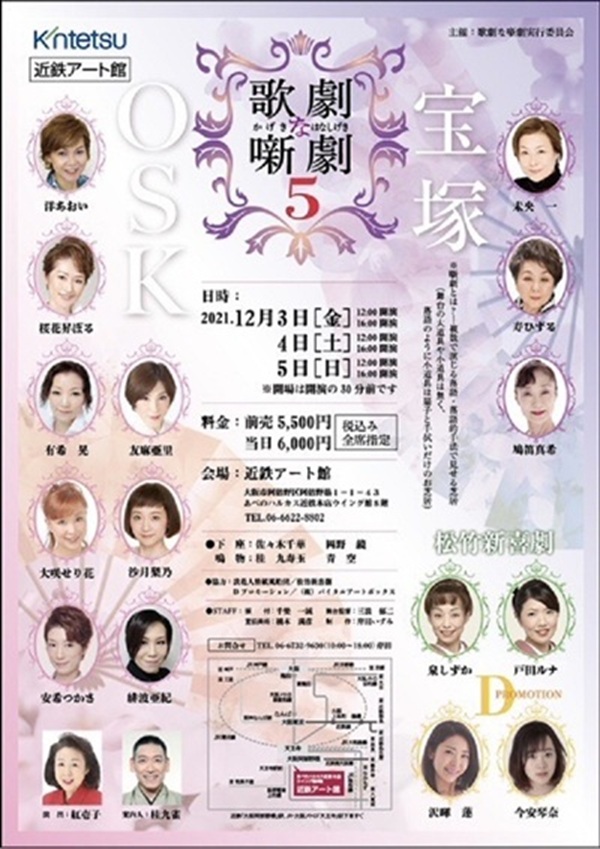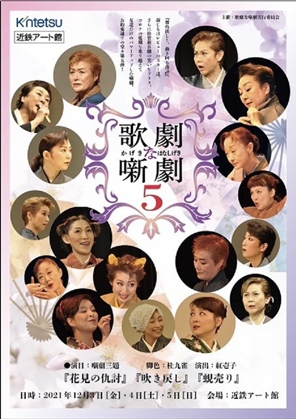 【 歌劇な噺劇 5 】 【日時】 2021年12月3日(金)-5日(日) 3日(金) 12時開演 / 16時開演 4日(土) 12時開演 / 16時開演 5日(日) 12時開演 / 16時開演 ※開場は、開演の30分前です。 ●「舞台狭しと、動き回る落語」 演じるはレビューのスター達。 さらに松竹新喜劇の笑いをプラス。 コロナ禍の延期を乗り越えて、 女達だけのパワーアップした噺劇。 お約束通りの堂々第5弾! ●● さてさて、 今回の洋さんの役どころは?? ●演目:噺劇三題 脚色:桂九雀 演出:紅壱子 〜〜〜〜〜〜〜〜〜〜 「花見の仇討」 ★あらすじ 長屋の4人組の仲間。 花見の趣向で見物人を驚かそうと、 仇討ち狂言を計画する。 その段取は飛鳥山の桜の下で仇役の金さん が煙草を吸っている所へ、巡礼兄弟役の よしさんと吉さんがやって来て名乗りを 上げ仇討ちの立ち回りを始める。 まわりに大勢の見物の人垣ができたところ で六部姿の六さんが現れ、止めに割って> 入り酒、さかな、三味線、太鼓で総踊り という趣向だ。早速稽古をして準備万端。 翌日、六部役の六さんが叔母さんの所へ 三味線を借りに行くがあいにく留守。 叔父さんが六部姿を見て本当に四国巡礼に 行くと思い込み、六さんを引き留める。 いくら「花見の趣向」で六部姿をしている のだと言っても、耳の遠い叔父さんは 「相模から四国か」と聞こえる始末。 六さんの持っていた酒を二人で飲み始めた が叔父さんの方が強く六さんは酔って 寝込んでしまう。 巡礼役の二人は飛鳥山の近くで二人の侍と 出会い、仇を探しているのだと話して しまう。 朝早くから飛鳥山に来ている仇役 の金さん、待ちくたびれているところへ やっと巡礼姿の二人が到着する。 いざ、手はずどおり仇討ちの茶番の立ち 回りを始めるが、なかなか止め役の六部が 出てこない。 すると、さきほどの侍が現れて、 侍 「これこれ、巡礼、仇にめぐり逢うて めでたいのう。拙者ら両名で助太刀 をいたすぞ」、と刀を抜いた。 金さん 「おいおい、冗談じゃねえや、 筋書きに助太刀なんか入っちゃ ねえぞ。なんだってあんなもの 頼んだんだ」 巡礼役 「むこうで勝手に来たんだよ」 金さん 「ことわれ、ことわっちゃいよ」 巡礼役 「今さら、ことわるわけにゃ いかねえ。これも因果とあきら めておめえ、斬られちまえよ」 金さん 「とんでもねえ、おれは逃げるよ 逃げるよ」 巡礼役 「おめが逃げるならおれも逃げるよ」 三人一緒に逃げ出したから驚いた 侍 「おいおい!、逃げるには及ばん。 勝負は五分だ、五分だ」 巡礼役 「肝心の六部が見えねえ」 ……落語散歩22より ★さて噺劇では、どうなることやら… 「吹き戻し」 ★あらすじ 遊びが過ぎて親から貰った財産を使い 果たした喜之助。 「幇間(たいこもち)上げての末の幇間」 で野幇間などをやっていたが、上手く 行かずにわずかな金を懐中(ふところ)に 夜逃げ同然で江戸を抜け東海道を西に 向かった。 京、大坂にも留まることなく九州へ渡って たどり着いたのが肥後は熊本城下。 旅籠はいくつもあるがどこも喜之助を 誘わない服装(みなり)で懐中はすっかり 読まれているすると行燈に旅籠「江戸屋」 の文字が目に入った。 空腹と懐かしさで飛び込んだ喜之助。 その夜は風呂、酒、料理を楽しみ、長旅の 疲れもあってぐっすりと寝た。 翌朝、江戸屋の主人が喜之助の部屋に 来る。 もとは湯島同朋町の大和屋の主人で 喜之助とは旧知の遊び仲間。 江戸屋も江戸から流れ流れてここ熊本で 出直し旅籠を始め繁盛しているという。 喜之助は江戸屋の勧めで、料理人として 働くことになる。 料理はもとより、帳付け、客引き、掛取り と店のことなら何でも器用、達者にこなす 喜之助その上、幇間よろしく客を喜ばし、 喜之助さん喜之さん、喜之どん、と 引っ張り凧、江戸屋にはすっかり信用され 重宝がられて、早や、三年が過ぎた。 ある日、得意客のお供で阿蘇見物から 帰った喜之助は、祝儀を主人に渡す。 江戸屋の主人は「お前さんから預かって いるお金、全部で幾らぐらいあると思う」 「さあ、三、四十両というところでしょう か」 主人「さすが以前は若旦那、鷹揚だなあ、 偉いなあ、何と百両だ」 主人はもう少し辛抱すれば江戸屋の暖簾 分けをするから、この地に留まって親戚 付き合いをしようと誘う。 少し考えて来ると言って、二階へ上がった もう江戸へ帰ることなどとうに諦め、 思っても喜之助。 みなかった喜之助だが、百両あれば 江戸に帰れる。 ふつふつと望郷の念が湧いて来た。 そうなるともう居ても立ってもいなれない ほど江戸が恋しく帰りたくなる。 打ち明けられた江戸屋の主人も諦めざるを えない。 主人は奉加帳を回して二十両を集めてくれ 餞別として五両を包んでくれた。 しめて百二十五両だ。 喜之助はもう江戸へ帰った後のことばかり 考えて、気が高ぶって寝られない有様だ。 夜明け前に江戸屋を飛び出し、熊本城に 別れを告げ、二里半ほど西の百貫の港へ と急いだ。 江戸へ荷を運ぶ船に、 「母親が病気で急いで帰らね