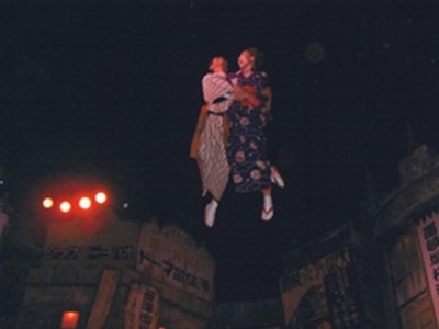 そしてこの特大パフェ、名前も ズバリ道頓堀!もちろん 食べられました。 また、街のあちこちで突然展開 される道頓堀極楽歌劇団の コテコテの大阪のお芝居。 元OSKの沙月さん、晴日さん、 毬紗さん、雪乃さん達が 出演されている極楽夫婦善哉が、 毎日繰り広げられています。 元OSKの仲間達がイキイキっと 演じられるのを見て、洋さんも良い 刺激になられたようです。 会場には、作・演出の北林先生や OSK時代の先生方もおられ、 なつかしくお話されていました。 最後に昔のおまわりさんとなかよく 記念撮影されていました。 プレビューを楽しまれたのも つかの間、8月のサマーコンサート の衣装探しに慌しく会場を後に されました。 ![]() おまわりさんとハイポーズ! ![]() 極楽歌劇団、空中の沙月さん |