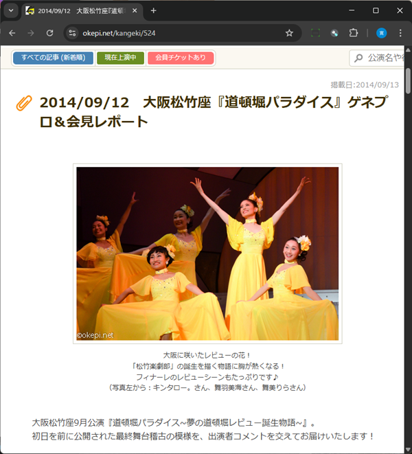 2014年9月13日(土)- 2014年9月24日(水) 大阪松竹座 大阪松竹座9月公演 『道頓堀パラダイス ~夢の道頓堀 レビュー誕生物語~』 |